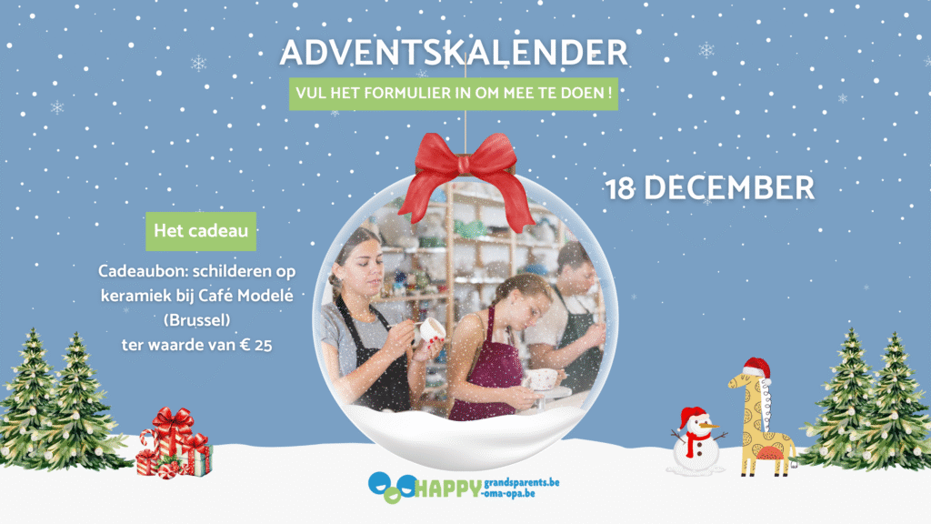 Probeer vandaag een cadeaubon : schilderen op keramiek bij Café Modelé (Brussels) ter waarde van 25€! Open elke dag een nieuw venster en laat je verrassen door een geweldig cadeau!
